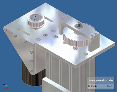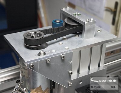 Und nochmal eine Draufsicht. Ich habe noch eine Spannrolle hineingebaut. Der Riemen lässt sich super spannen.