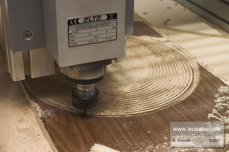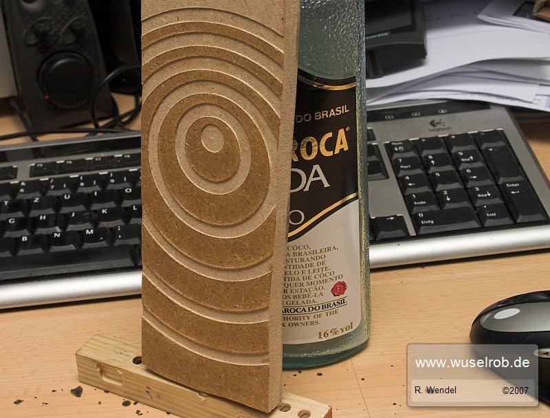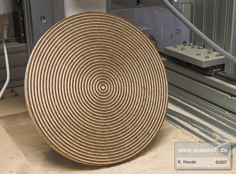 Hier hab ich heut mal mit einem anderen Fräser konzentrische Ringe gefräst und das ganze zum schluss von der usprünglichen Schranktür befreit *g*