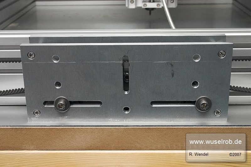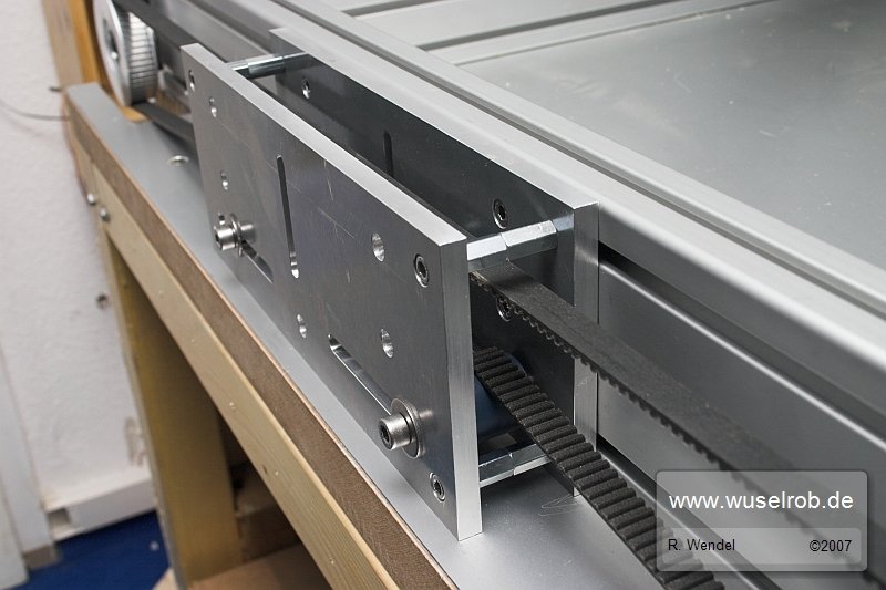 Rollen und Front angeschraubt und Riemen gespannt: