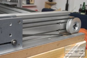 Sieht ganz gut aus. Der Riemen bleibt auch endlich auf einer Stelle und rutscht nicht hin und her. Straff gespannt ist er auch. Gefällt mir.