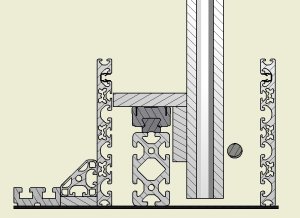 Um den Graben zwischen Maschinentisch und Schutzprofil auszufüllen (da können die Späne so schön reinfallen) werde ich ich ein 45° Profil einplanen (siehe Schnittbild).